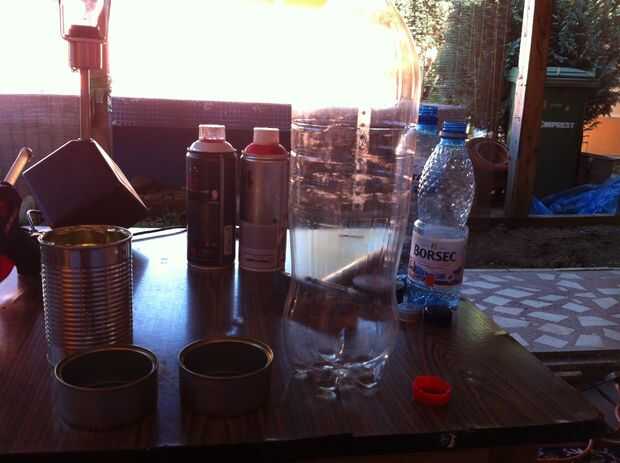 Corte la botella grande por eso si pongo en su cara que es un ajuste. Luego corte la parte superior para que el agujero tiene un diámetro de dos pulgadas.Paso 1: Hacer la caja del filtroTomar una botella de agua de 2 oz y 10 pequeños agujeros en la p