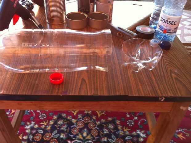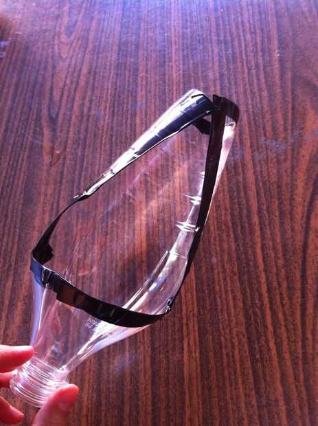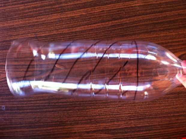 Luego, trazar 2 líneas paralelo 3/4 de la botella desde la parte que corte y luego conectarlos en el último trimestre como se muestra en la segunda foto.