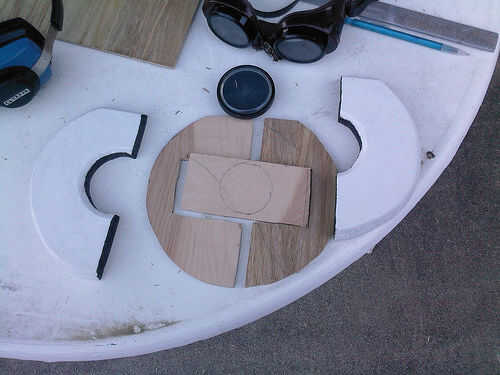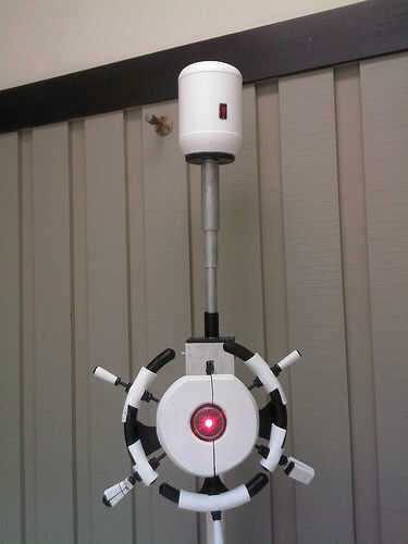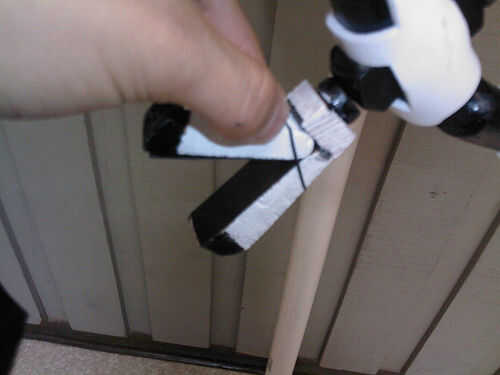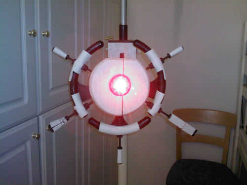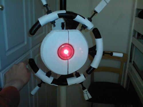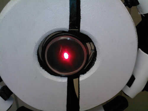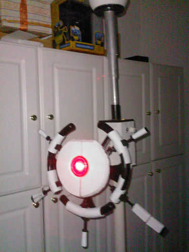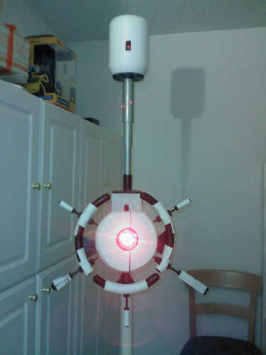 Básicamente es timón de un barco madera modificada que comprado en tienda de artesanía de Michael que pintar y lijar para la exactitud de la película. Su ojo es el marco de metal y vidrio de un reloj y detrás de ella puse un super brillante LED rojo (inspirado en esta ' ible). Además, los cinco de su... nave "clavijas" puede ser extendida a una longitud de 2" y está equipado con una garra de grabber y tazer sintética (como la película). Pero quizás la función más cool es que yo también construyó en él un altavoz teledirigido que utilizo para el control de su voz desde un ordenador habilitado MacinTalk, dándole esa impresionante voz monótona oscurezca de la película.
