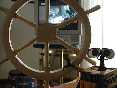 En la primavera de 2009, cuando era el representante público del grupo wall-ebuilders.com, nos estábamos preparando para nuestro primer evento Maker Faire y necesitaba algo genial para mostrar que éramos. Mientras yo estaba un poco presionado por el tiempo para la construcción de un WALL-E, yo estaba muy influido por un video que vi de WALL-E otro constructor en youtube que pintó de la rueda de un capitán como villano de la película y fue inspirado para construir mi propio (con las modificaciones agregadas por supuesto).