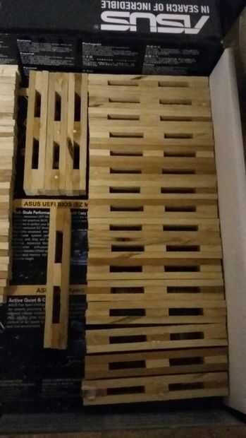 Recibí esta paleta azul, que resulta que son los palés más fuerte en el mundo construido por CHEP. Era un poco un esfuerzo para conseguir aparte pero tienen más (y mejor calidad) madera que es útil.He esbozado una idea para el Banco y entonces de hec