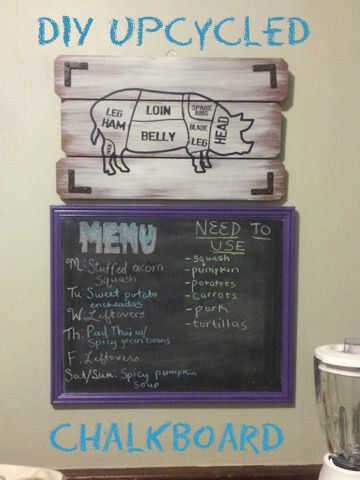 Recientemente me mudé con mi novio y mientras él es grande en muchas cosas, de decoración no es su fuerte (que está bien por mí). Ambos tienden a ser más frugal, por lo que es difícil para nosotros a gastar dinero en artículos caros que sabemos que podemos hacer nosotros mismos. Siempre nos gusta ir a descuentos (una tienda) y ver lo que podemos encontrar en el barato convertir en algo nuevo; recientemente encontramos un marco grande y decidió que debería convertirse en una pizarra para la cocina, así que podríamos tener una visual de nuestro menú semanal, así como un lugar para productos perecederos de la lista que necesitamos usar antes de ir a la basura.