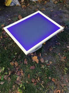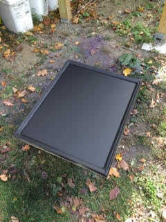 Después has que la Junta seque durante la noche, utilizar alguna cinta adhesiva para cubrir el marco para proteger el color que hayas elegido. Después de que hayas hecho esto, estás listo para rociar el centro con la pintura de pizarra. Rocíe 2-3 capas, esperar 1 hora entre capa y capa. Deje que la pintura seca de aproximadamente una hora antes de despegar la cinta.