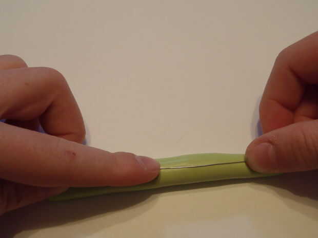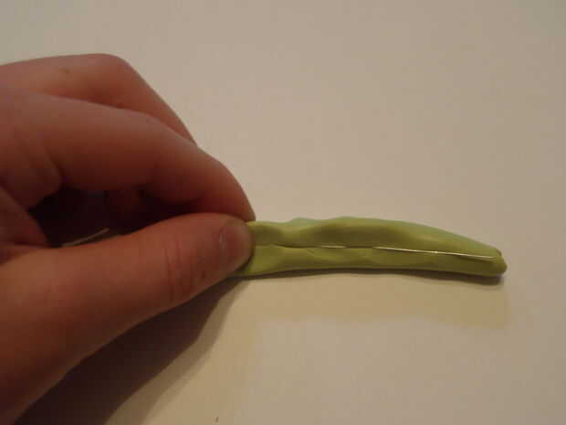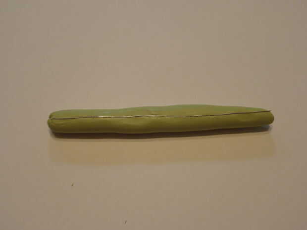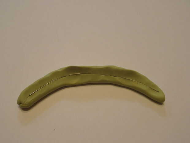 Tome el cable y coloque encima el sculpey. Presione el cable en la arcilla como puede y pellizcar la mitad superior de la sculpey para hacer un arco.