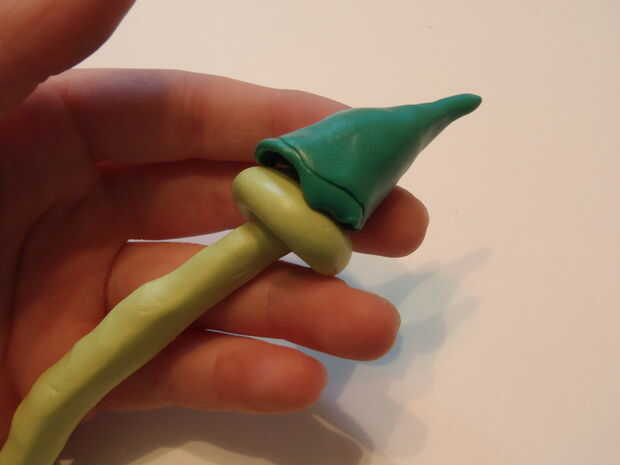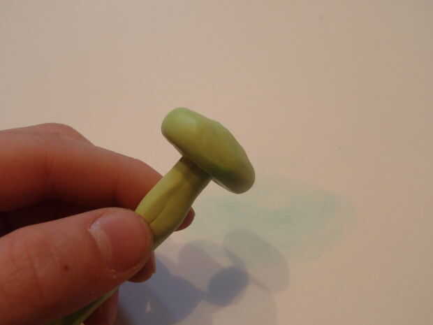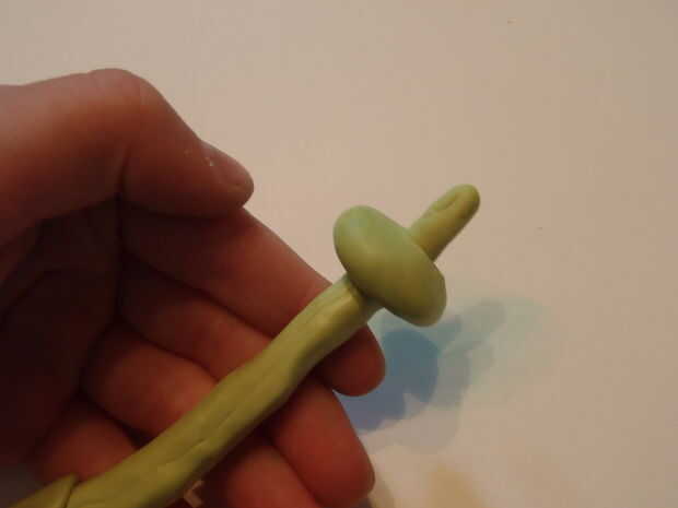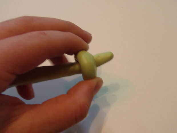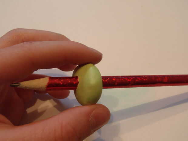 Ahora, deslice con cuidado el sculpey de lápiz y en la espiga sobre un centímetro a través. Poner las setas sobre la cabeza. Si la cabeza es más ancha que la parte superior, tomar la tapa y aplasta alrededor de la cabeza, lo que es más pequeño y más largo.