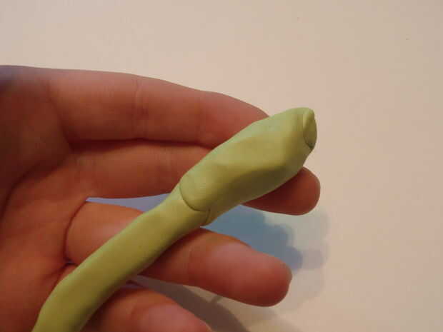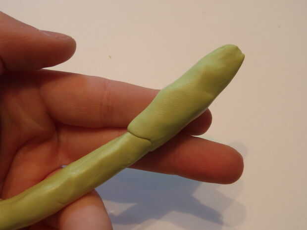 Ahora, la cabeza sigue siendo demasiado grande para la parte superior para montar en, pues aplastar y presione hasta que quede más plano y más largo. Si hay un pequeño Consejo flaco sobresale de la cabeza, con cuidado retire para que la cabeza se ajuste más cómodamente. Puede también tienes que quitar un poco de la cabeza, pero asegúrese que el cable no está expuesto nunca.