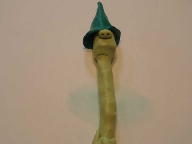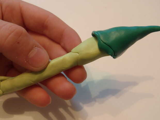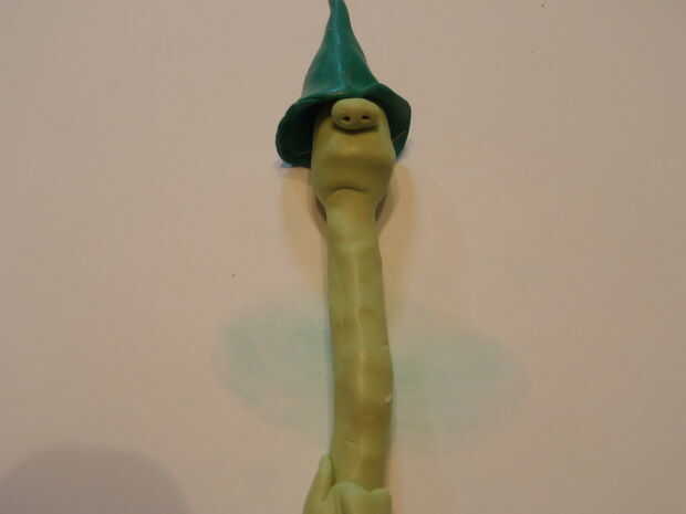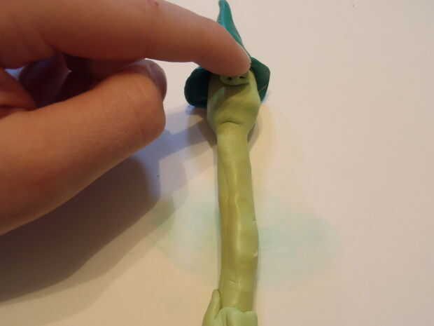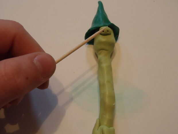 Deslice la parte superior seta en la cabeza y ponerlo sobre la mesa. Con cuidado coloque la nariz la cabeza, bien apretada en la parte superior de seta. Las fosas nasales probablemente cedieron un poco, abra tan cuidadosamente la parte posterior para arriba con un palillo, lo suficiente como para poder decir que es una nariz.