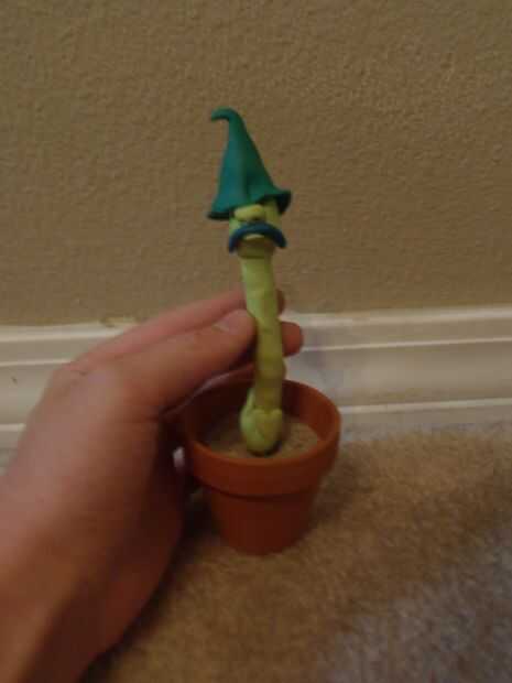 Cuando el hongo se hace horneado, deslice el palillo en el agujero, agudos secundarios en. Después de eso, lo inserte en el bote llenado de arena.