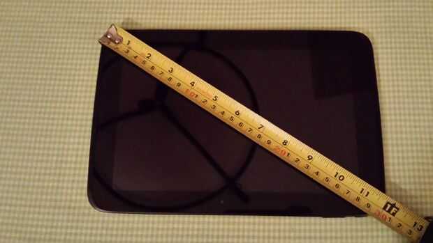 Para este paso, usted debe medir las dimensiones de la pantalla solamente! Después se miden las dimensiones de la pantalla, usar parte del cartón de desecho para hacer un rectángulo del mismo tamaño que la pantalla del tablet. Para la tableta Nexus 10, las dimensiones son 8,5 "x 5 3/8".