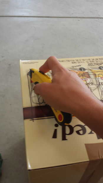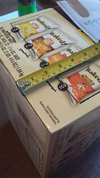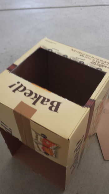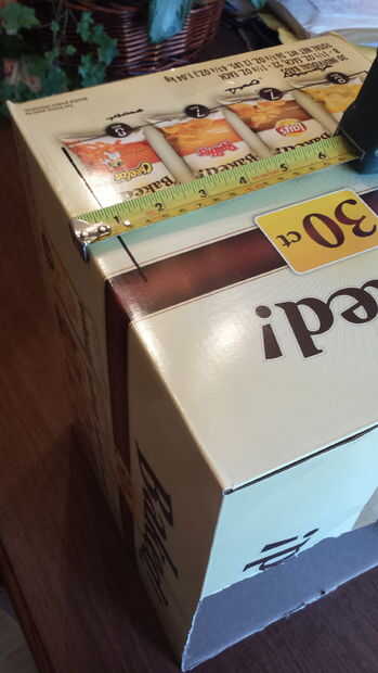 Una vez que un recorte de cartón de tamaño de la pantalla, colocar el recorte encima de la caja. El recorte de 2 1/4" en la posición de la parte trasera de la caja (imagen 2). Asegúrese de dejar un borde en los lados de la tableta se apoye en como se muestra en la última imagen cuando cortando la parte.