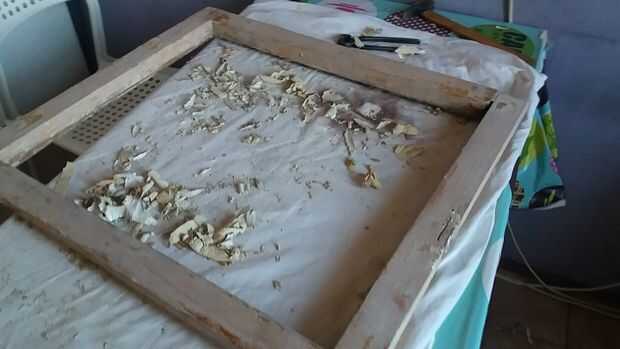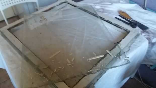 Primeros quitar el cristal. Esa parte era fácil porque estaba todo listo venir parcialmente. Entonces usando una pistola caliente, quité la pintura vieja. Hubo por lo menos 6 capas de pintura de aceite y... Sabes lo que me refiero. Después de esto necesita pegar. Las juntas en uno de los lados fueron cayendo appart. Cuando el pegamento seca usé masilla para madera para llenar todo el daño y arena suave.