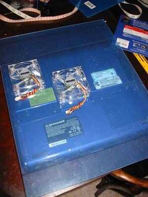 A continuación pone el plexi sobre la parte posterior de la notebook para la colocación del ventilador. Mi Alienware tiene dos áreas de admisión en la parte inferior y los puertos de escape en los lados. Marque las esquinas de los fans para poder marcar los círculos y cortar hacia fuera.