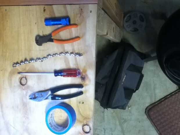 Artículos necesita: Cortadores de alambre, destornillador largo, pequeña linterna, alicates, cinta adhesiva, alambre de metal fuerte [usé conducto]