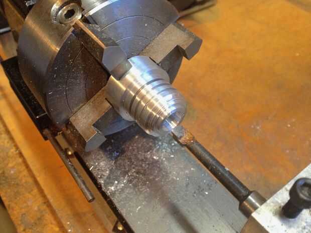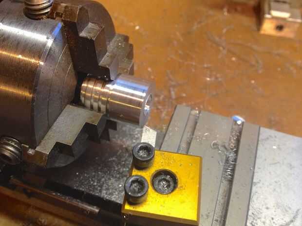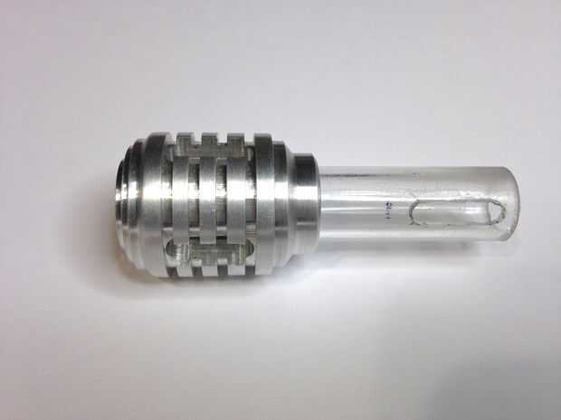 He hecho el cuerpo principal de una sección de la espiga de madera que encontré en mi garaje. Yo aburrido el interior a 1" diámetro y entonces dado vuelta abajo el diámetro exterior. Las piezas de aluminio se convirtieron en mi torno. Los surcos fueron cortados usando una herramienta de corte y los orificios perforados y agujereó hacia fuera usando una barra aburrida. Cuatro ranuras fueron molidas en el pedazo de nariz usando un 3/16" final molino-estas ranuras permiten que el aire circule alrededor de los sensores colocados en la pieza de punta. Un orificio de 1/2" de diámetro fue aburrido en el cuerpo delantero y pieza de la nariz por lo que podría instalarse un tubo de acrílico transparente. El tubo de acrílico tiene una ranura de corte en ella para que se puede extender y retraer - un pequeño tornillo en la pieza frontal del cuerpo localiza la ranura en el tubo de acrílico.