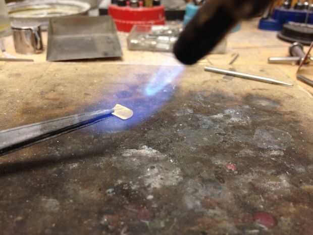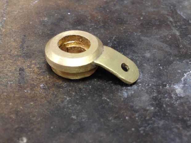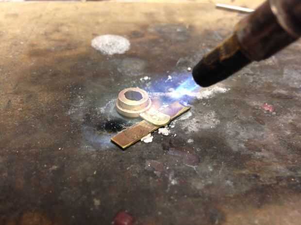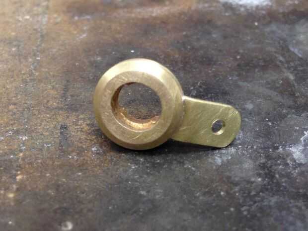 Una vez satisfecho con el ajuste que hice una lengüeta de montaje para el cuerpo de la célula fotoeléctrica de latón. Una pequeña lengüeta fue corte, formada y luego recocida con una antorcha-esto hace que el metal suave por lo que es fácil de doblar para que coincida con la curvatura del cuerpo de madera. Esta ficha fue soldada al soporte fotocélula con una antorcha de plata.