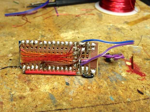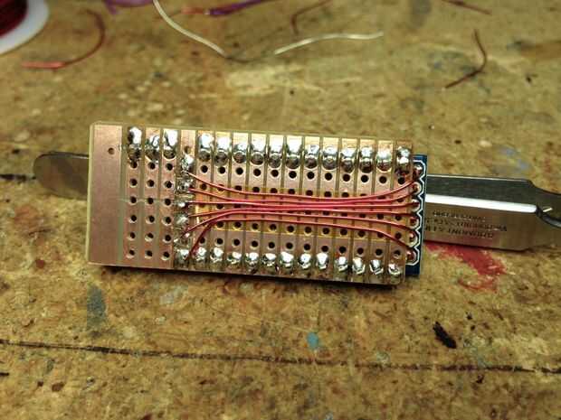 Hay un montón de hardware que tiene que caber en un espacio muy pequeño y soldar todas las conexiones punto a punto puede ser un poco complicado cuando se trata de hacer que todo cabe en un pequeño trozo de placa de prototipos. Si tienes alguna experiencia soldadura estarás OK pero 's definitivamente no un trabajo para un principiante.