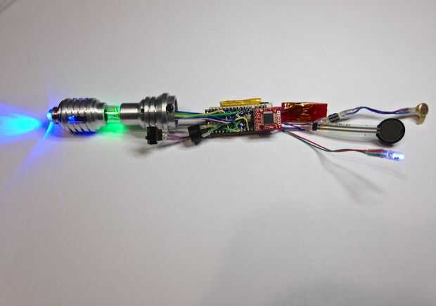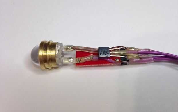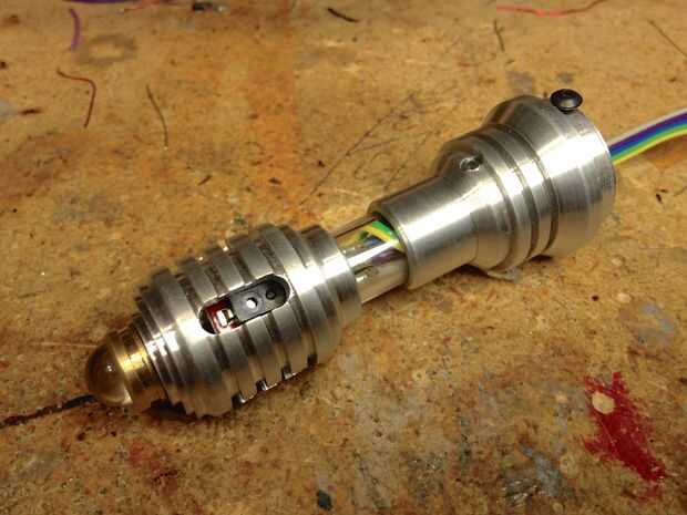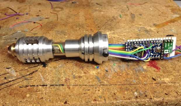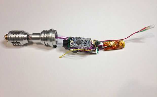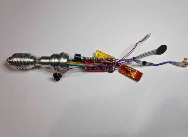 Montar el resto del circuito es bastante sencillo. He intentado usar el cable más delgado y más flexible posible para ahorrar espacio y reducir longitudes de cable mediante la combinación de energía común y líneas de tierra. Cuando yo primero por cable hasta los sensores de temperatura y humedad con el LED en la pieza de punta utilicé los cables que eran demasiado rígidos por lo que después reemplacé estos cables con un cable de cinta delgada. Yo totalmente reconstruido este circuito dos veces en mi intento de todo para caber en el cuerpo de destornillador.