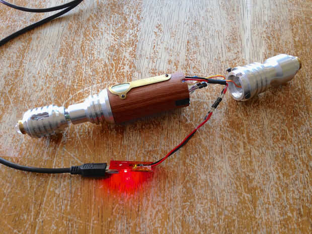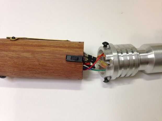 Resultó que los cables necesarios para ser una cierta longitud para poder conectar todo y poder tirar aparte y tomaron demasiado espacio en la sección de la cubierta posterior con el USB circuito de carga. Afortunadamente la solución fue muy simple-que simplemente quitar el circuito de carga y un conector de alimentación de dos clavijas usando unas pinzas de cabecera. Así sólo podría tirar para abrir la parte trasera del destornillador y conecte la batería al circuito externo de carga. En el futuro podría modificar así que solo hay un dos pin de carga conector sobre el cuerpo del destornillador por lo que no tiene que ser tomado aparte. Ahora el interruptor es prensa encaja en una ranura de corte en el cuerpo de madera, como todavía no he encontrado una manera de montar al cuerpo que se ve bien pero tengo un par de ideas en los trabajos...