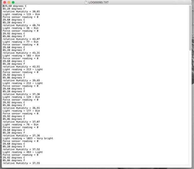 Para obtener el sensor conectado datos solo saque la tarjeta SD del OpenLog y descargar el. Archivos TXT a tu ordenador. Si usted desea puede exportar los datos a Plotly y hacer todo tipo de gráficos frescos, hacer una Carta de Google o subir al sitio de datos de Sparkfun.