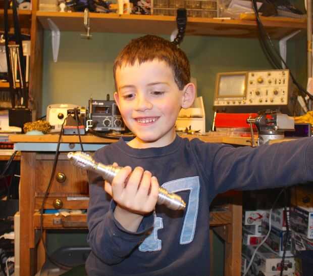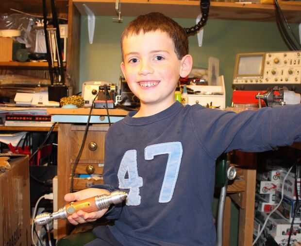 Paso 8: El Señor de tiempo joven inspecciona su destornillador Sonic nuevo!
