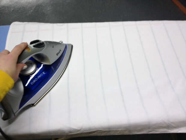 24 horas después de su funda de almohada, la pintura de hierro completamente la caja de la almohadilla para permitir que la pintura definir. Yo primero planchar el reverso del funda de almohada que no pinto, luego que planchar el frente pintada de lado. Asegúrese de que todas las líneas de planchado.
