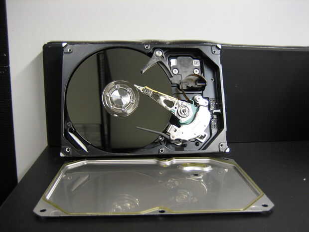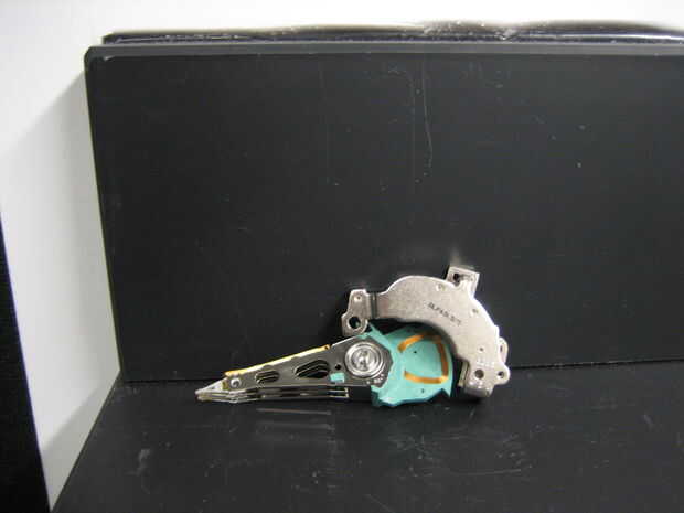 Abrí el disco duro por sacar la tapa. En el interior es el plato del disco duro, la cabeza de lectura y de los imanes que coloque la cabeza de lectura. A veces es un pequeño imán que sujeta la cabeza de lectura en una posición "cerrada" que se encuentra en la parte inferior derecha de la imagen. Este disco duro no tenía uno pero en otros que he desmontado, hay. Los imanes pequeños son útiles en esta construcción así que asegúrese de mantener en un lugar seguro si encuentras uno. Preferentemente no en usted teléfono celular.