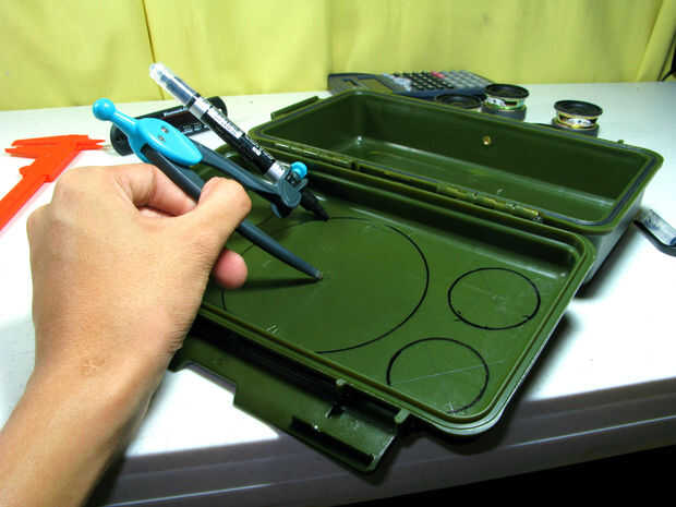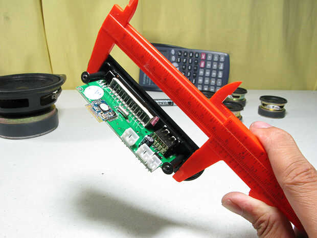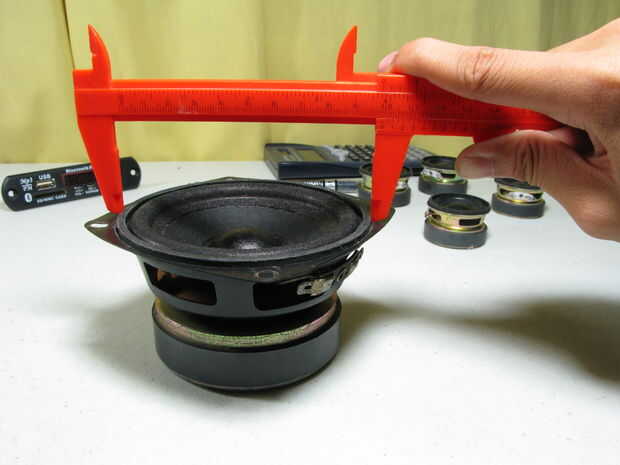 Obtener el calibrador a vernier / regla entonces transferir mediciones de altavoces mediante el uso de una brújula y marcador.