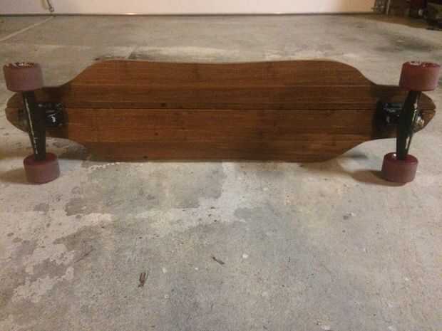 Para la Junta, usted querrá ir con madera contrachapada de alta calidad. Probablemente puede ir a Home Depot y escoger algo para unos 20$. Cortaban 3 veces gratis, y luego el resto es 50 centavos por cortar. Si no quieres pagar por el corte, entonces sólo tiene que utilizar un rompecabezas/Serrucho (tenga cuidado sin embargo, he tenido a las cuchillas snap usar la sierra caladora en esquinas). A continuación, puede utilizar papel de lija para obtener las esquinas agradables. Esto probablemente costará 5$ y te desea un grano más grueso, en alguna parte alrededor de 150. Si tienes una máquina que enarena, irá mucho más rápido. Luego, si tienes astilla agujeros o muescas en las esquinas de la placa, relleno de madera es de 10$. Tenía mi tabla corte lazer, así que no esperes nada tan preciso como la mía, pero si manchas y añadir el revestimiento de poliuretano (ambos pueden ser encontrados en Home Depot) entonces veremos mucho más agradable (25$ para los dos y un cepillo). Después de eso, use una broca o un tornillo realmente agudo y realizar los orificios para los camiones. Usted querrá usar un lápiz y dibujar líneas en su tabla antes de hacerlo para hacerlo exacto (si no es exacto el centímetro, la placa no gire a la derecha). Entonces, dependiendo del tamaño de la tabla, cinta de agarre se puede comprar en amazon de $ 5-25. Hice un tablero eléctrico no usando este proceso con tablas anteriores, y podrá ver el resultado terminado en la foto fotos.