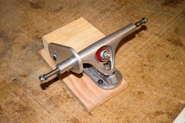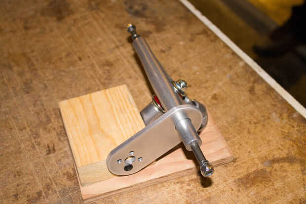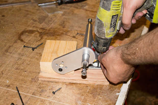 Utilice una sierra de calar y un router para cortar el aluminio hasta las dimensiones anteriores. Por ninguna razón en particular, la rueda trasera fue elegida para ser alimentado.