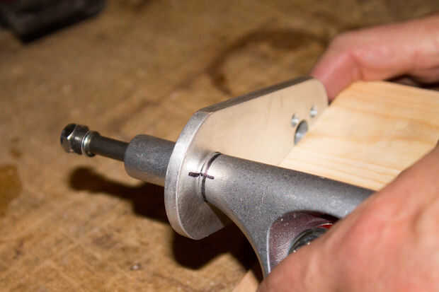 Es importante el posicionamiento de la montura. Es necesario ir tan lejos como sea posible en los camiones. También debe orientarse hacia abajo tanto como sea posible sin tocar el tablero (ver imágenes arriba). El posicionamiento fue probado con un seco-quepa el motor, rueda, polea y correa; empujando los carros de lado a lado para ver si toca el tablero.