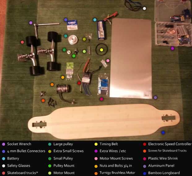 La imagen realmente habla por sí mismo aquí. Etiquetamos los diferentes componentes de nuestro patín eléctrico en la foto de arriba!