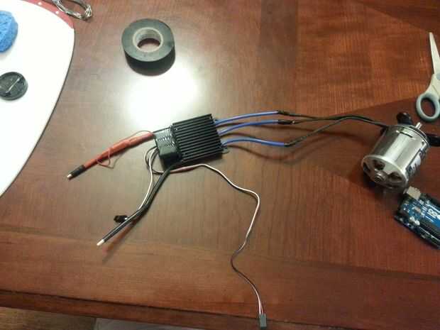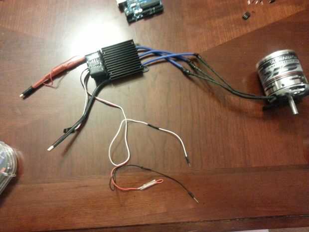 Así en este paso, yo prácticamente solo había empalmado los cables juntos desde el variador al motor y luego el regulador de velocidad a cables de conector que pueden conectar fácilmente a la Arduino. Utilicé una combinación de cinta aislante y los conectores que encoge sensibles al calor para asegurar los cables.