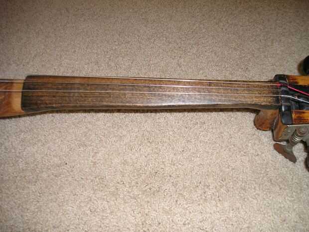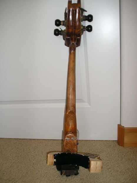 Yo había hecho un violín eléctrico antes y armados con las lecciones aprendidas de esa estructura, este es el 2 º, versión más fresca de este:Materiales:aproximadamente 2 pies de madera de 2 * 2 pulgadas (caoba, arce, teca)Un diapasón violín hecha de