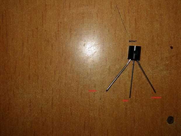 Montar el circuito tal como se indica en el diagrama. He mencionado la base, emisor y colector del transistor bc547.