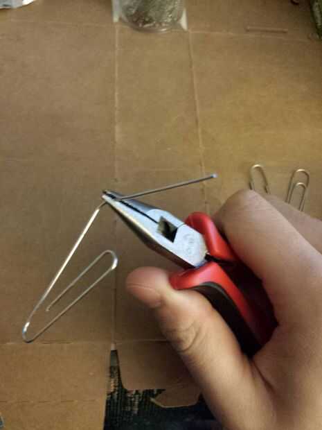 Empezar por doblar el clip hasta que quede completamente recto. Luego curl el clip exactamente como yo, trate de no meterse hasta, más dobla el clip la mayor posibilidad te complemento razón por la cual necesitamos 3. La sección central se convertirá en la empuñadura y el rizo es conseguir unos springyness en el arco. luego doblan a la forma como en la otra foto y cortar los extremos extras les curl ligeramente así que usted no consigue apuñaló y necesitamos los agujeros para ejecutar la cadena a través de. El corte depende de cuánto quieres a tu arco.