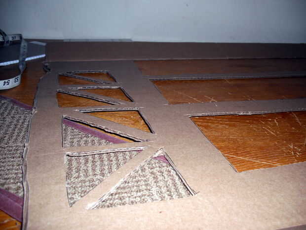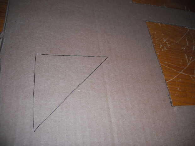 Medir a una llave de triangulo que es de 3 pulgadas de ancho y 3 pulgadas de profundidad. Hacer la anchura y la profundidad se encuentran en un ángulo recto. Conectarlos con una línea recta por el medio. Cortar uno y usarlo como plantilla para los próximos.