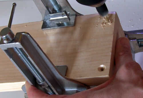Broca de taladro de 2 orificios a través de la pieza superior y lateral, utilizando un avellanado, esto permitirá que la cabeza de los tornillos a hundirse debajo de la superficie.