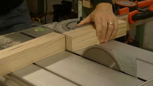 Compré la partícula tableros antes de la corte, que ahorra mucho trabajo. Las vigas se cortan por un bloque de tope de ajuste y corte todas las piezas con la misma longitud a la vez. Usted puede usar als un inglete vio o incluso hacerlo a mano.