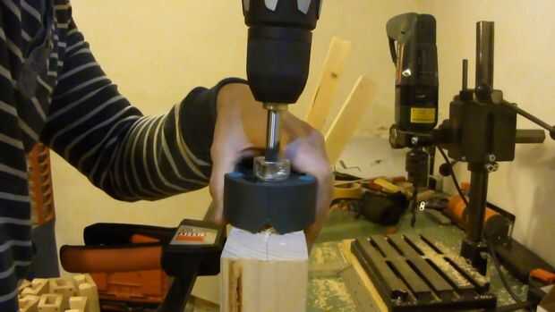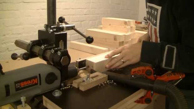 Puede marcar y taladrar los agujeros en las vigas a mano. Para acelerar esto, construyó una taladradora horizontal. Una vez puesta a punto que puedo perforar muchos agujeros rápidos y precisos.