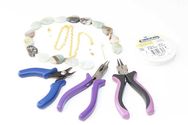 Lugar engarzado en hilo, lazo extremo a través del grano de la encrespadura y exprimir el grano de la encrespadura con tus alicates.