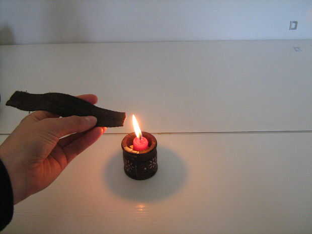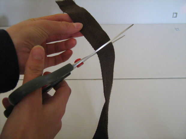 Luego sacó una vela y encendida para dorar el extremo de la correa para que no debilite más tarde con el uso frecuente. Esto es importante para las telas de plástico, pero si usas algodón, quiere doblar los extremos debajo de sí mismo (lo de dobladillo) y a través de la tela doblada para evitar que se deshilache. Si estás usando cuero, realmente no tiene que preocuparse, pero que será un punto duro. :/