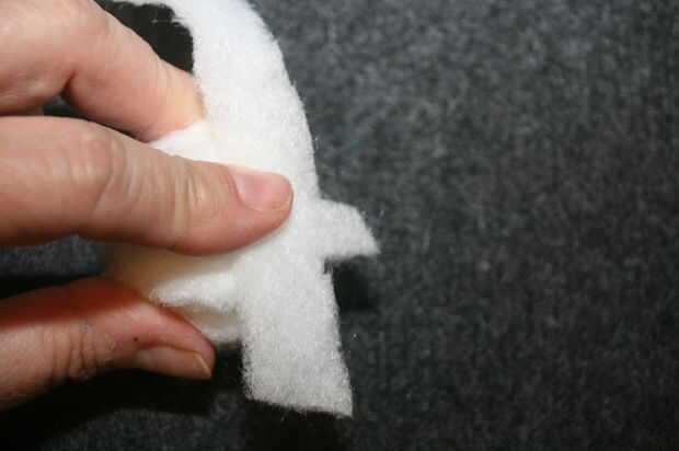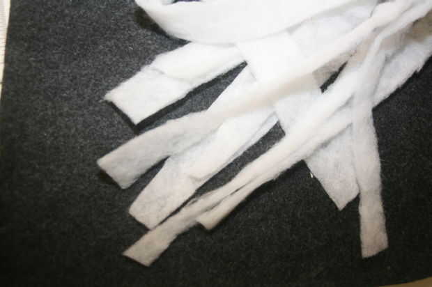 Con hilo y aguja, coser unas puntadas rápidas en la cola de la última tira para sujetar en su lugar y quitar el pasador.