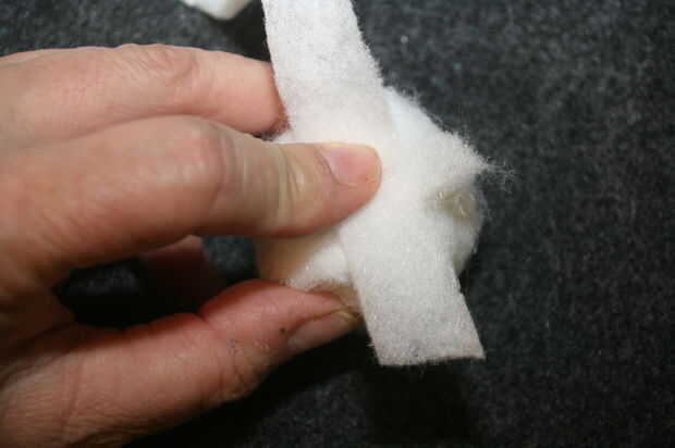 Comience envolviendo un trozo más amplio de bateo, así como usted enrollaría una bola de hilo o cadena. Que desea mantener y envuelva bastante bien. Seguir agrega tiras como uno se acabe, superponiendo hasta alcanzar el diámetro deseado.