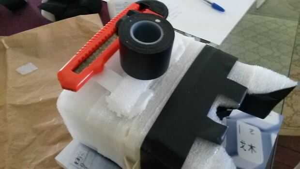 Así que corte un trozo de espuma de 1cmx0.7cmx6cm para sostener el velcro suave y pegado en la parte inferior de la pieza, después de todo lo probado pegué (pedazo de cinta y la espuma) y poner algo en la parte superior para mantener en su lugar (utilicé la Xacto para el velcro y la cinta aislante de la espuma en la parte superior el velcro;