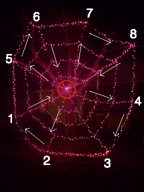 la primera Halloween después nos casamos, mi maridito, me llevó a dar un paseo a una comunidad vecina. Nos detuvimos frente a una casa que tenía una araña enorme en el techo. Él dijo, "Quiero eso". Así, el próximo Halloween, y cada uno desde ent
