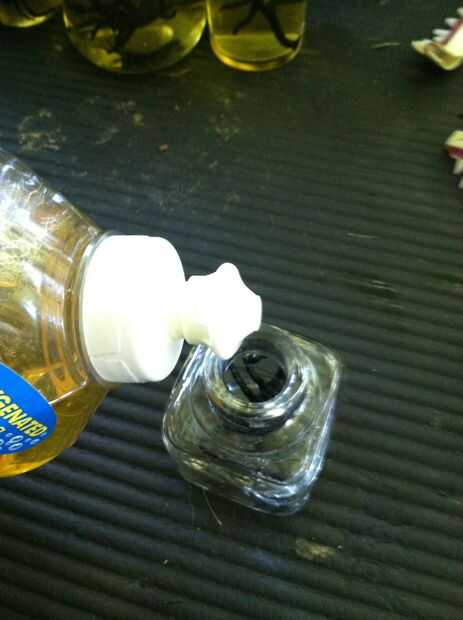 Lentamente vierta líquido de plato en frascos-hacerlo lentamente ya que causa menos burbujas de aire a ser atrapado. Después de sentirse tarros, dejarlos reposar unos 45 minutos casi todas las burbujas de aire se eliminará.