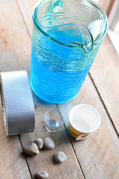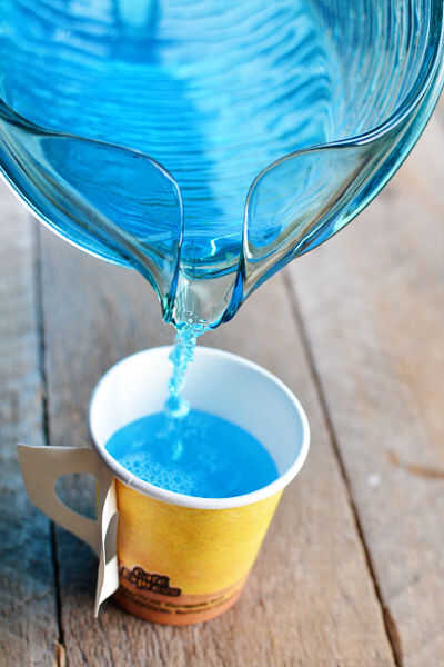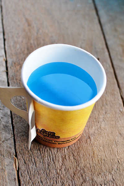 Pour bebida en taza más grande sobre 2/3 por completo.