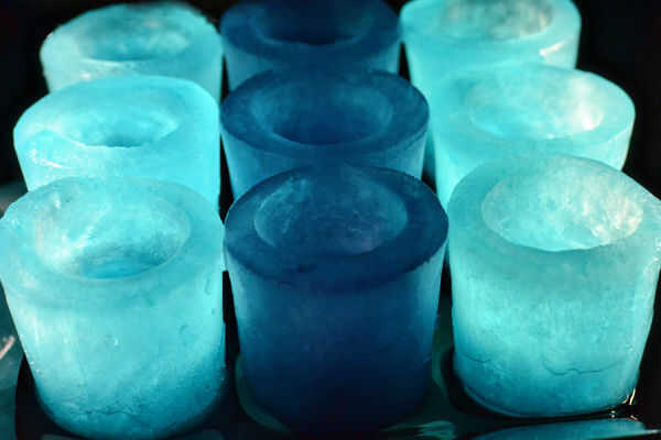Retire del congelador. Llene el vaso pequeño con agua caliente del grifo, teniendo cuidado de no dejar derramar sobre el hielo. Deje reposar por unos 30 segundos. Copa del interior removedor. Ejecutar fuera de copa más grande con agua caliente hasta que se afloje la taza del hielo. Vuelta y presionar suavemente en la parte inferior de la Copa hasta que el hielo hace estallar hacia fuera. Traer vasos al aire libre para tu fiesta de invierno y llenar con la bebida de su elección.