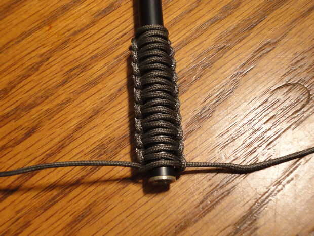 Aunque existen varios métodos efectivos para atar la cuerda de utilidad el método que usar se conoce como una armadura de cobra. Normalmente solía hacer paracord braclets. la armadura de cobra es un seguro método de atar que le permite almacenar una gran cantidad de cuerda atando en un patrón ajustado que es fácil de deshacer. Por favor, revise la imagen GIF en esta página para ver cómo es la armadura de cobra, o simplemente buscar Instructables hay varios tutoriales de gran que ya existen con cómo tye este patrón.