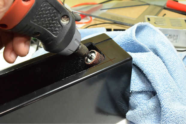 Utilizar la herramienta de sierra para metales o rotatorio para cortar el plástico que has marcado. Utilice una lima de metal para igualar los bordes.